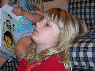 Beth's daughter in a bit of an animal cracker induced haze. :) (It was pretty late!) Beth, I hope the "corns" on her feet are all better! :D